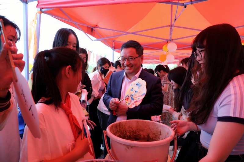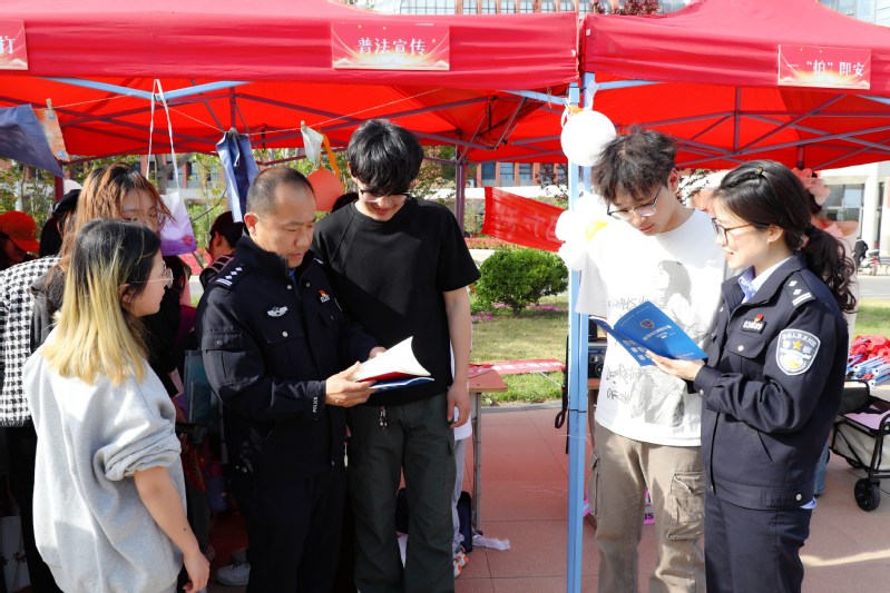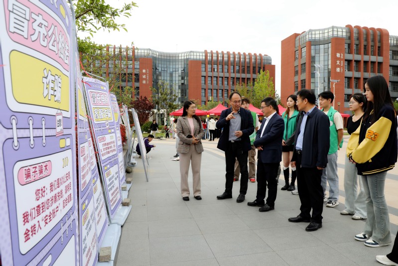 活动现场,校领导张农、李苏北与大龙湖派出所民警亲切交流,充分肯定了警民联动安全教育模式,希望进一步深化警校合作,筑牢校园安全防线。校领导一行还参观了非遗技艺展示区,赞扬了大学生融合传统文化与国家安全元素的创意。
