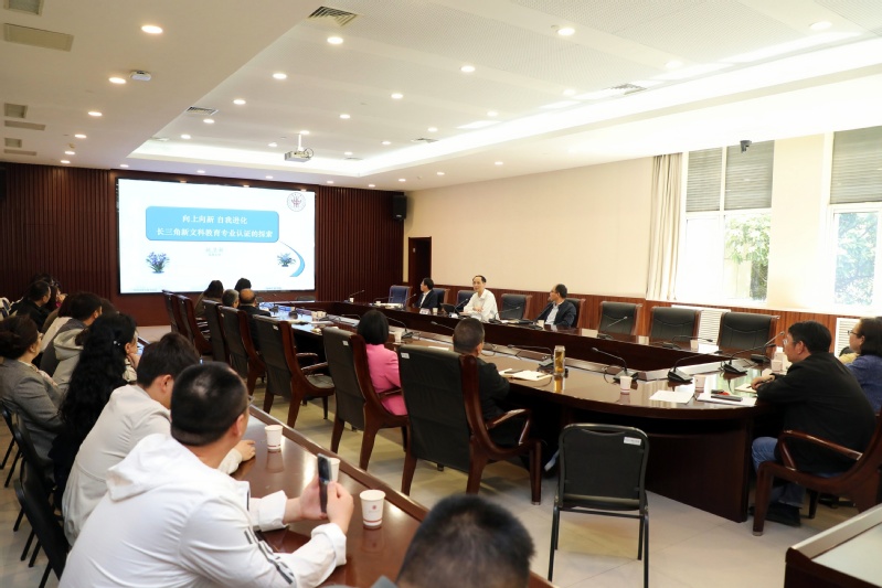报告会上,姚卫新教授作了题为《向上向新 自我进化——长三角新文科专业认证的探索》的学术报告。他从新文科专业认证的工作准备、工作难点、逻辑结构等方面入手,结合实际案例,详细解读了新文科专业认证的人才培养理念和工作要点,深入阐释了新文科专业认证的内涵与路径,描绘了长三角高校携手合作、共同探索新文科认证的蓝图。