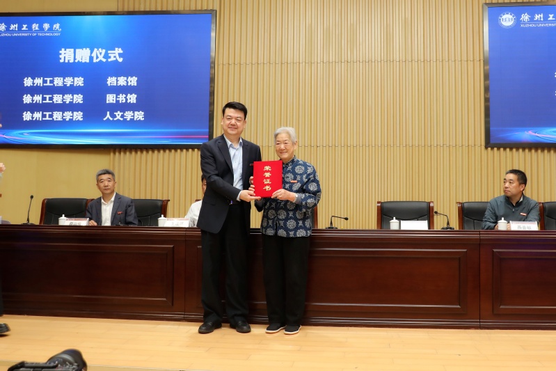 捐赠仪式上,刘洋书记向朱新兰教授颁发了捐赠证书、教育贡献奖牌。人文学院、档案馆、图书馆共同接受朱新兰教授的捐赠。