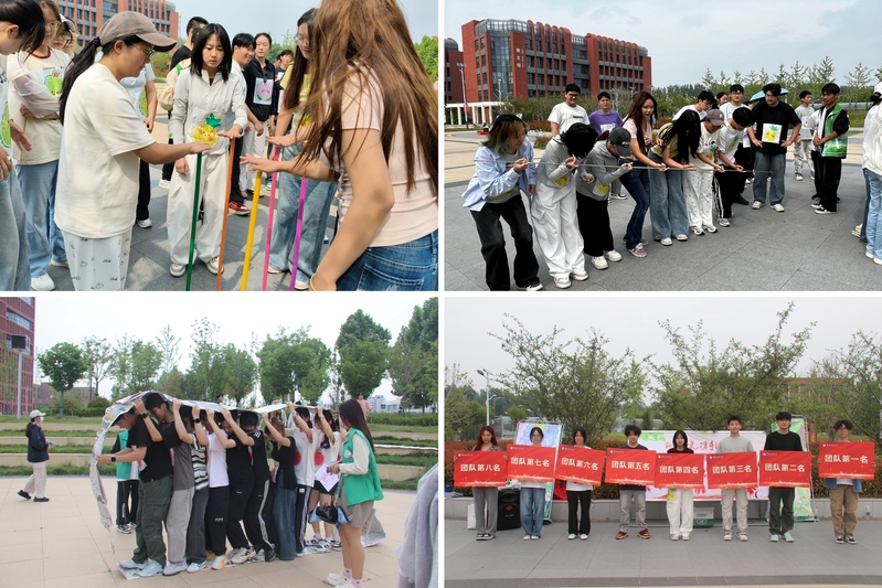活动精心设计了多个寓教于乐的拓展项目。“你画我猜”环节,团队成员初步破冰;“一圈到底”环节,大家手拉手传递呼啦圈,通过调整站位、沟通节奏顺利完成;压轴项目“无敌风火轮”环节,各队用废旧报纸制作“履带”,团队成员统一步伐前进,材料断裂声与加油呐喊声交织在一起。通过参加活动,同学们在真实互动中学会了积极应对压力,建立支持系统,乐观面对困难。