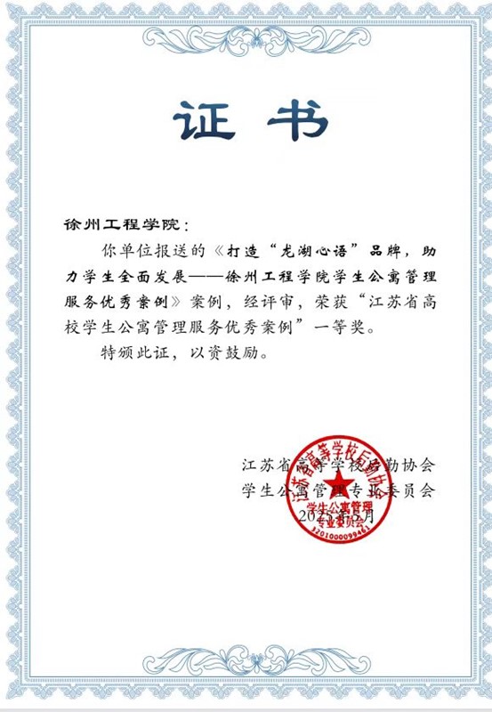 5月23日,江苏省高等学校后勤协会学生公寓管理专业委员会2024年年会暨学生公寓管理服务智慧化转型论坛在南京理工大学(盱眙校区)举行。我校《打造“龙湖心语”品牌,助力学生全面发展》案例获江苏省高校学生公寓管理服务优秀案例一等奖。