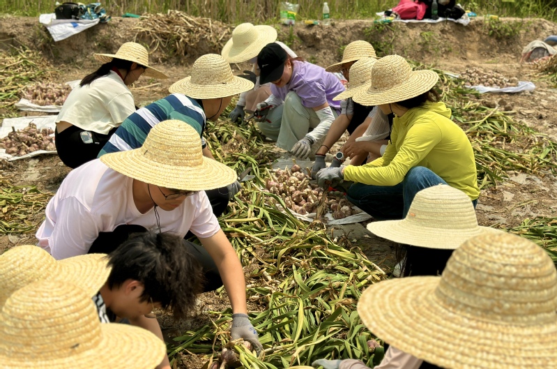 “青春强基”行动,激发青春动能。5月22日,校团委将劳动育人课堂移至田间地头,把知识融入实践,组织学生来到邳州市议堂镇开展劳动教育,帮助议堂镇的孤寡老人采收大蒜。校长张农、副校长王逢博深入活动现场,和师生交流劳动所想所悟所得,体验劳动之乐,感悟劳动之美。张农校长勉励同学们在劳动中开拓广阔天地,在劳动中体现价值、展现风采、感受快乐。劳动实践中,同学们协作有序,迅速掌握动作要领并投入采收工作中。随着动作从生疏到熟练,同学们弯腰采收的身影在田间渐次推进,以实干诠释“劳动最光荣”的价值理念。