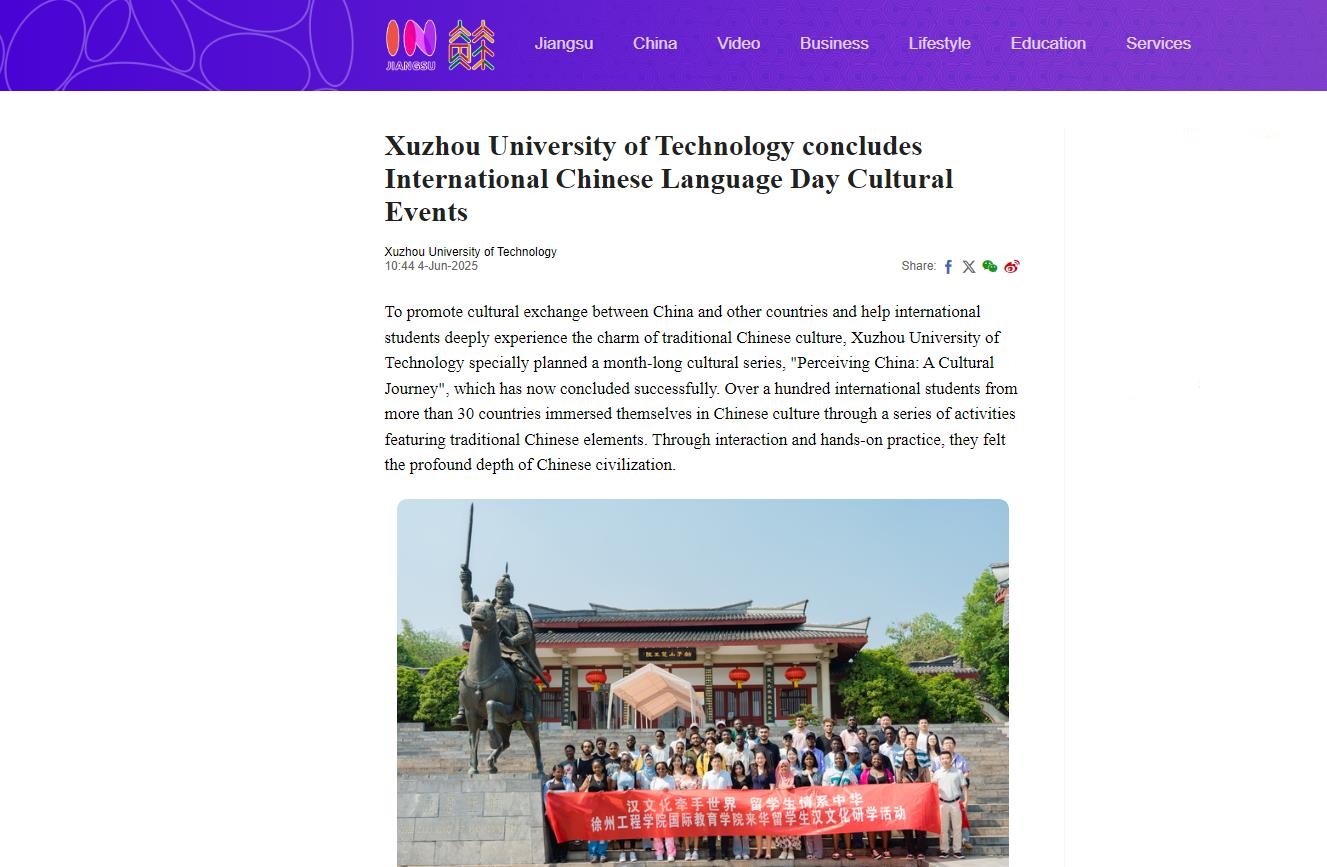 4月18日到5月28日,国际教育学院组织开展校第二届国际中文日系列文化活动,活动涵盖戏马台与楚王陵楚汉文化研学、艾草锤非遗制作、端午节包粽子及棋类友谊赛等。活动以“看、做、悟、传”为脉络,引导留学生在参观历史遗址、体验传统手工艺与节庆习俗中增进对中国文化的认知与热爱,更搭建起中外文化交流桥梁,助力留学生成为中华文化传播使者。此次系列文化活动得到了交汇点新闻和我苏网等媒体的报道,其中我苏网以英文传播向全球传递活动盛况,双平台双语联动宣传我校来华留学教育文化育人实效。