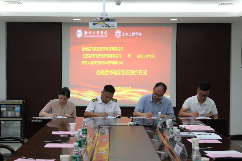 会上,学校与三家企业共同签署了战略合作协议。双方就无人机驾驶员执照考试点建设、实训平台建设、多元化人才培养模式设计、无人机微专业建设等方面达成初步合作意向。