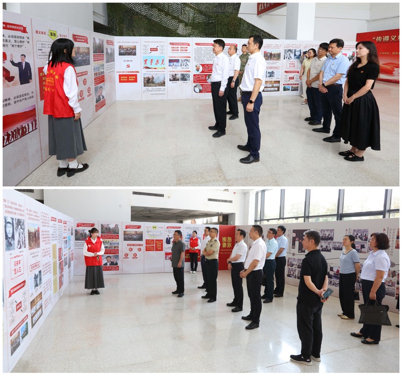 纪念遵义会议90周年主题图片展在我校逸夫图书馆举行。图片展由组织部、学工部、图书馆、商学院联合主办,分为遵义会议的历史脉络、精神内涵和奋力走好新时代的长征路三个板块,全方位再现了那段波澜壮阔的革命岁月。校党委书记刘洋,校长张农,校党委常委、组织部部长涂宝军,云龙区委常委、人民武装部政委代海军,市退役军人事务局副局长陈志刚、校党委学工部(人武部)、云龙区退役军人事务局、云龙区人武部、第71集团军医院、淮塔管理中心、新元小学等单位负责人和师生代表350余人参观图片展。同时,还举行了“重温转折岁月 感悟信仰力量”主题演出,以舞蹈、微短剧、朗诵、独唱等多种艺术形式串联起历史记忆与时代精神,让观众真切感受到信仰的力量。