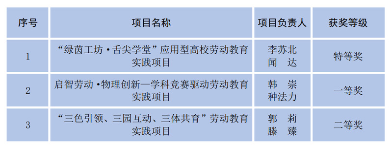 近日,2025年江苏省第二届高等学校劳动教育优秀实践项目评选结果公布,我校遴选并申报的3项劳动教育实践项目分别荣获特等奖、一等奖、二等奖。