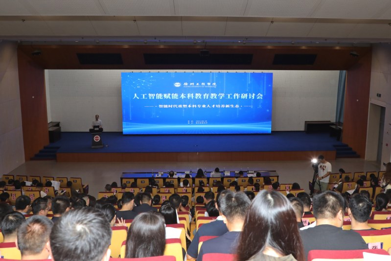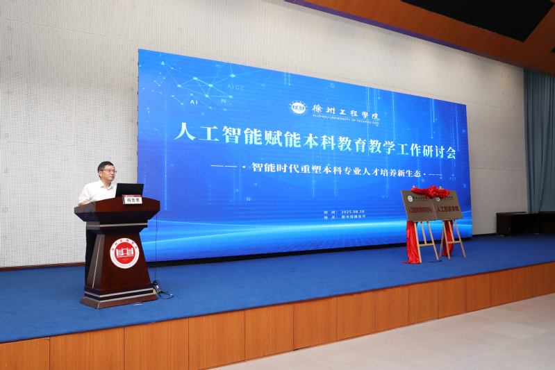 为深入贯彻落实国家关于人工智能赋能教育的战略部署,积极推进智能时代本科教育教学改革,8月30日,我校在逸夫图书馆报告厅召开“人工智能赋能本科教育教学工作研讨会”。本次会议以“智能时代重塑本科专业人才培养新生态”为主题,旨在全面推动人工智能与教育教学的深度融合。校长张农、校党委副书记李苏北,徐州市工信局副局长张兴旺出席会议。会议由李苏北主持。
