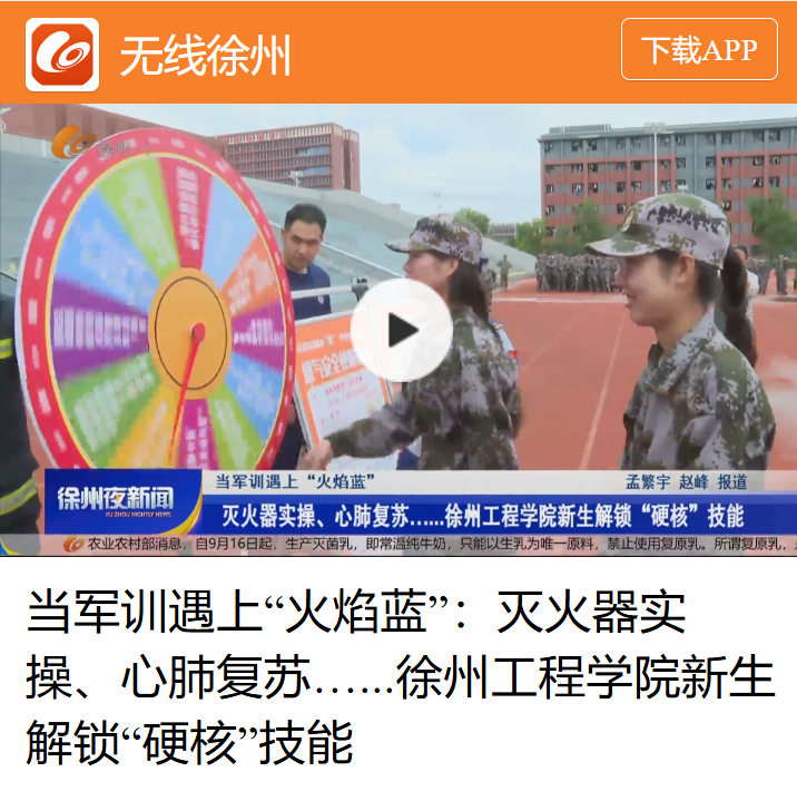 9月17日上午,大龙湖旅游度假区消防救援大队、徐州彭城救援队和泉山区红十字会应邀为我校2025级新生开展应急救护与安全救援实操演练培训。该活动由校保卫处、学工处联合举办。《徐州夜新闻》栏目对我校消防演练活动进行了报道。