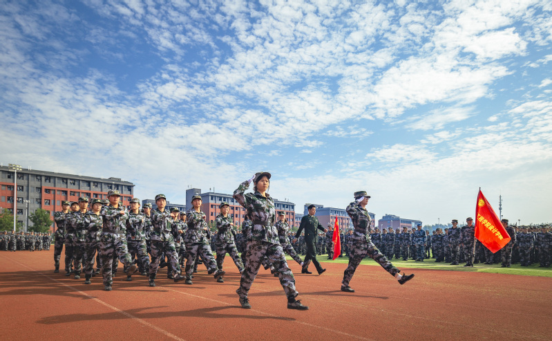 秋高气爽,军歌嘹亮。9月8日至21日,我校2025级新生军事训练在各校区田径场举行,5800余名新生全程参加训练。