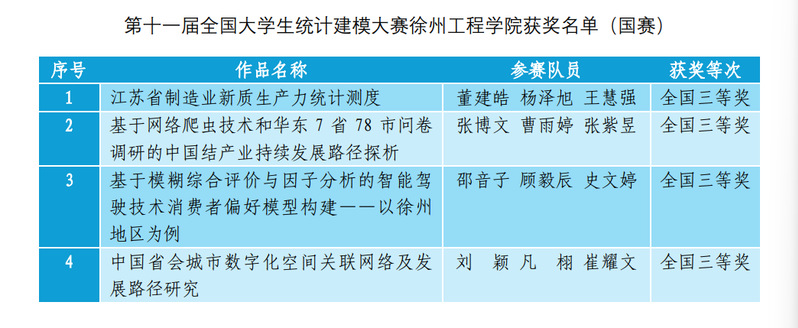 近日,2025年第十一届全国大学生统计建模大赛国赛在东北财经大学落下帷幕。我校4支代表队表现优异,凭借扎实的专业功底、创新的建模思维和出色的实践能力,在全国众多参赛队伍中脱颖而出,晋级国赛,并全部获得全国三等奖的好成绩。这也是我校学子首次入围国赛。