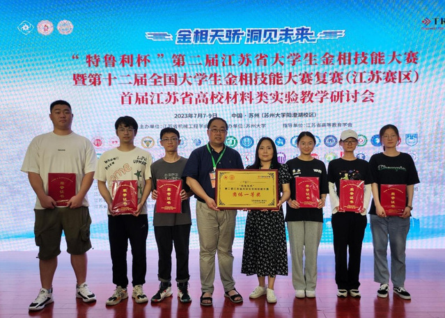 经过激烈角逐,我校机电工程学院王佳营、谢芸娜、王磊、钱颖、王宾骆、陈可六名学生组成的代表队荣获一等奖2项、二等奖4项,我校荣获团体一等奖。张宁、赵恩兰两位老师获“优秀指导教师奖”荣誉称号。我校代表队被江苏省遴选推荐参加第十二届全国大学生金相技能大赛。