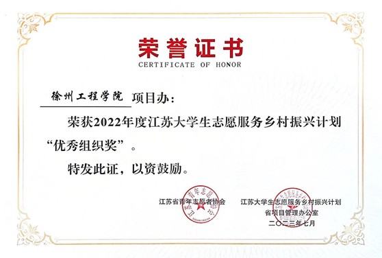 近日,西部计划实施二十周年主题分享会暨江苏省“百校牵百县兴千村”活动启动仪式在南京举行。仪式上对2022年度志愿服务乡村振兴计划先进个人、集体进行了表彰,我校荣获江苏大学生志愿服务乡村振兴计划“优秀组织奖”。全省仅20所高校获此殊荣!