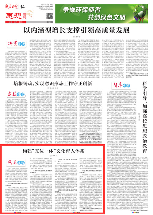 8月29日,《新华日报》思想周刊以“构建‘五位一体’文化育人体系”为题,报道我校大学文化建设工作。现全文转载,以飨读者。