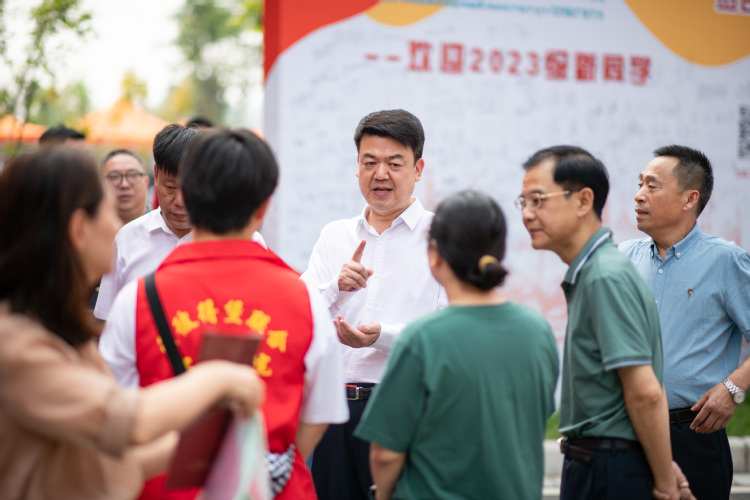 刘洋、张农等校领导来到各迎新服务点,他们向新生及家长表示热烈的欢迎和诚挚的问候,向现场工作人员表示慰问与感谢。校领导每到一处,都仔细询问报到情况,与新生家长亲切交流,关心他们的生活学习状况,殷切期望新生能够科学规划大学生涯,立鸿鹄志,练真本领,让青春在奋斗中焕发出绚丽光彩。校领导还深入新生宿舍,向家庭经济困难新生送出爱心大礼包,勉励他们安心学习,在大学里收获属于自己的成长。