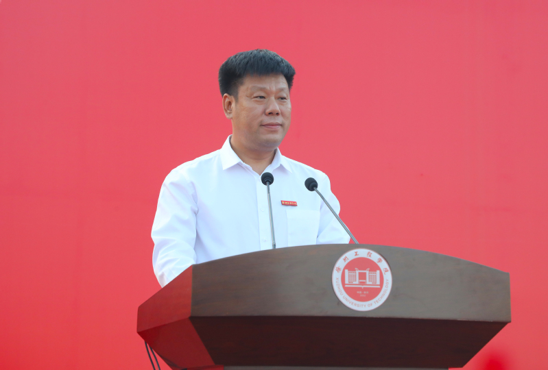教师代表、材料与化学工程学院吴琼博士在发言中表达了对青春岁月的赞美和对新生们未来四年的期许。高年级学生代表、食品与生物工程学院李若冰,新生代表、土木工程学院杨博恒分别作了发言,表达了对学校殷殷培育的感恩之情,抒发了请党放心、强国有我的时代心声。