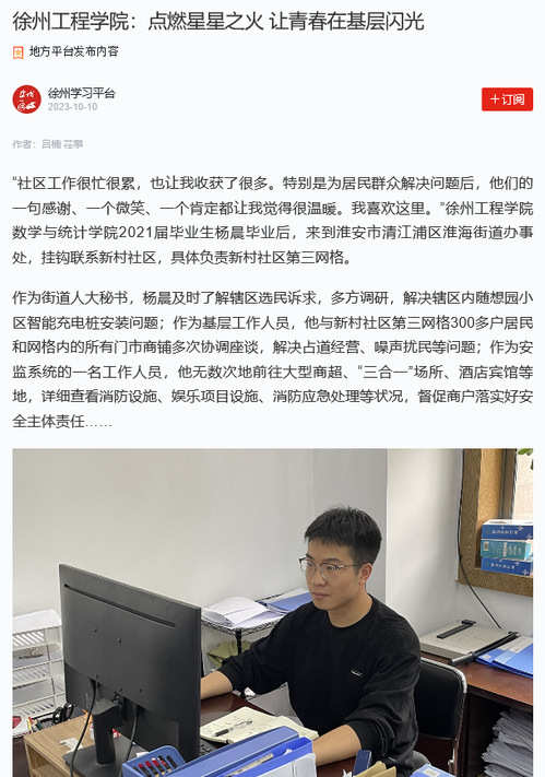 10月10日,学习强国平台以“乐竞官方网站:点燃星星之火 让青春在基层闪光”为题,报道我校数统学院扎实推进毕业生服务基层工作。