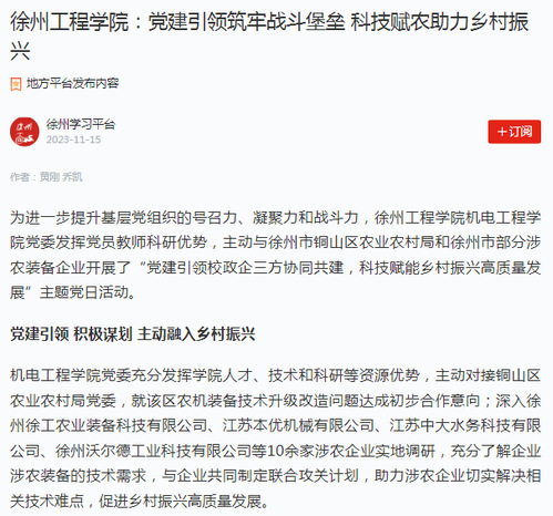 11月15日,学习强国平台以“乐竞官方网站:党建引领筑牢战斗堡垒 科技赋农助力乡村振兴”为题报道我校机电工程学院基层党建特色工作。
