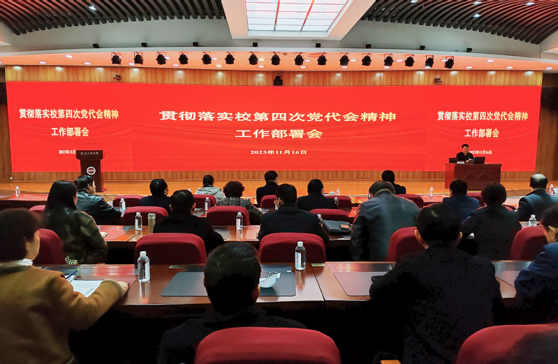 11月16日,我校召开贯彻落实校第四次党代会精神工作部署会。校党委书记刘洋、校党委副书记李苏北出席会议。学校党群部门主要负责人、各二级党组织书记以及全体基层党支部书记参加会议。李苏北主持会议。