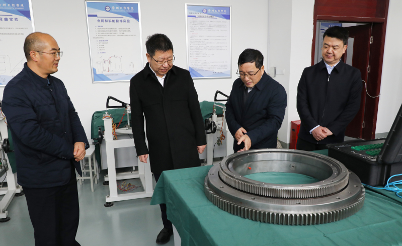 钟卫华一行实地调研了逸夫图书馆、淮海地区非物质文化遗产研究中心、土木工程学院建筑结构实验室、抗震救灾科普基地、机电工程学院产教融合实训基地、学生宿舍,与师生亲切交流,详细了解我校专业和文化建设、人才培养、社会服务等方面情况。