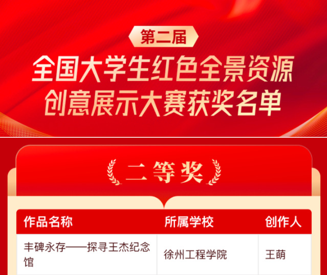 近日,第二届全国大学生红色全景资源创意展示大赛结果揭晓,我校马克思主义学院教师安克杰指导的实践教学作品《丰碑永存——探寻王杰纪念馆》荣获大赛二等奖。