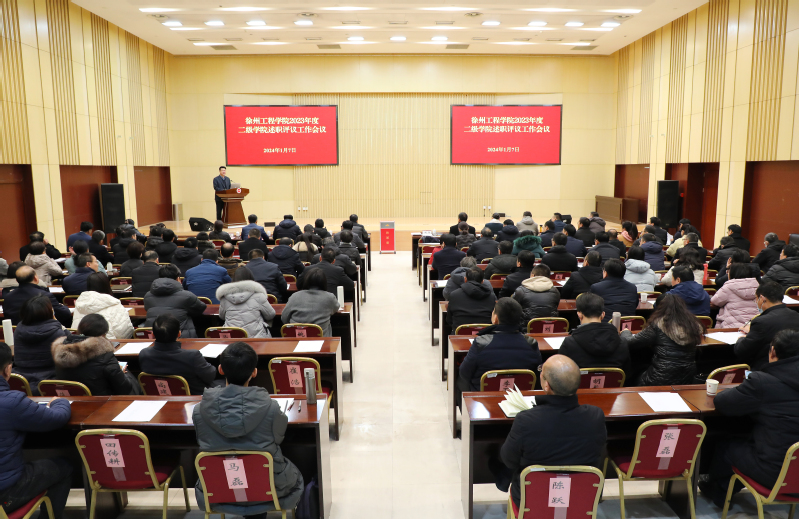 1月7日上午,我校2023年度二级学院述职评议工作会议在中心校区行政楼报告厅召开。全体在徐校领导,校党委委员、纪委委员,全体中层干部,各民主党派主要负责人,部分政协委员、人大代表,教师代表等近200人参加会议。校党委书记刘洋主持会议并讲话。