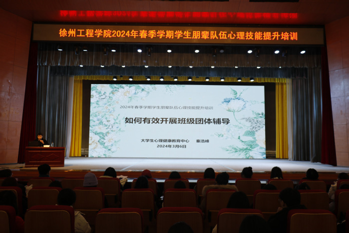 在活动周期间,学校还邀请中国矿业大学段鑫星教授、徐州市东方人民医院心理咨询与治疗中心王佳佳主任作为我校督导专家,定期为心理健康教师开展督导培训与座谈交流,为重点关爱学生提供心理评估和答疑指导。同时,为有效发挥学生朋辈在心理自助与互助方面的积极作用,激活“四级”预警体系,学校开展学生朋辈队伍心理技能提升系列培训。学校大学生心理健康教育中心精心编写系列培训内容,采用学校集中培训与各学院个性化指导的方式,围绕团体辅导、校园心理危机的识别与应对、学生朋辈队伍的自我关怀等专题开展系列培训,持续提升学生朋辈队伍的工作技能。