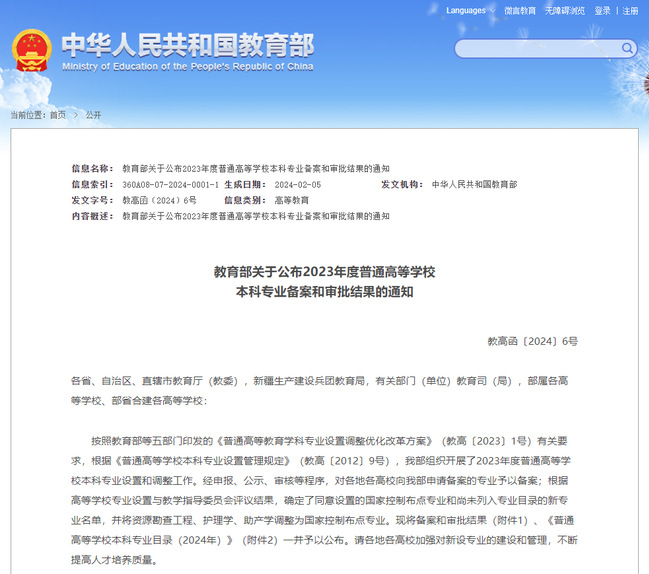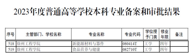 近日,教育部公布了2023年度普通高等学校本科专业备案和审批结果,我校申报的新能源材料与器件专业、食品营养与健康专业顺利通过教育部备案,计划在2024年秋季开始招生。