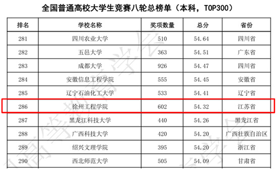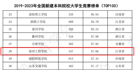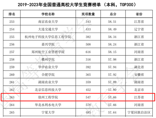 近日,中国高等教育学会高校竞赛评估与管理体系研究专家工作组发布《2023年全国普通高校大学生竞赛分析报告》。我校位列2019-2023年全国普通高校大学生竞赛榜单(本科,TOP300)第263位,前进19位。位列全国普通高校大学生竞赛第八轮总榜单(本科,TOP300)第286位,前进3位。在两大榜单中,我校皆位居本科高校300强。此外,我校还位列2019-2023年全国新建本科院校大学生竞赛榜单(TOP100)第28位,前进6位。