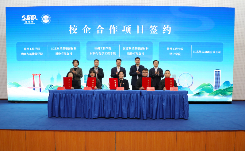 刘洋书记和赵鹏程主任共同为宿迁市在我校设立的人才工作站揭牌,相关企业与我校设计学院、物理与新能源学院、材料与化学工程学院签订了合作协议。