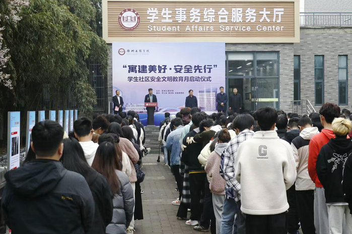 商学院21国贸3班的汤静仪同学作了表态发言;金融学院21财管1班的周枫弈同学向全校同学提出倡议,号召大家“争做文明学生,共建安全公寓”。
