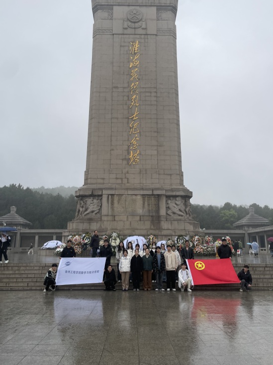 信息工程学院(大数据学院)学生党支部组织学生党员和入党积极分子来到淮海战役烈士纪念塔开展淮塔祭扫主题党日活动。同学们首先来到淮海战役烈士纪念塔前,大家拾阶而上,肃立于纪念塔前默哀悼念。随后,全体同学缓步绕塔一周,在塔基下、在回廊中深切缅怀革命烈士的丰功伟绩。学生党员怀着崇敬的心情重温入党誓词,表达对先烈们的崇高敬意和无限哀思。最后,大家前往淮海战役纪念馆观看红色文物,回顾峥嵘岁月,在一件件历史文物中感悟敢打必胜、科学决策、勇于担当、团结协作、依靠群众的淮海战役精神。