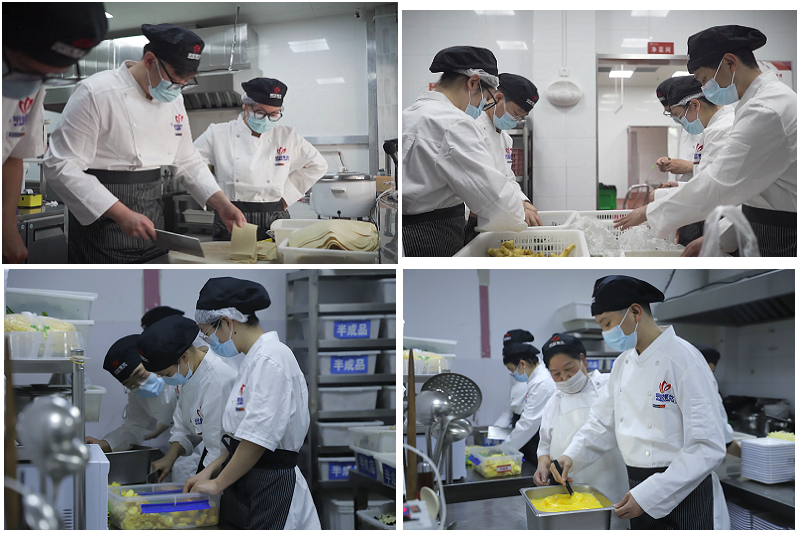 校园餐厅各岗位负责人根据学生兴趣和特长,对学生进行了全面安全与技术指导,岗位师傅与学生们就营养学、食材加工与佳肴烹制方法进行了经验交流。学生们结合自己的专业特色,融入营养学理念,亲手烹饪了特色菜,并现场营业,三天共销售了近400份,受到一致好评。