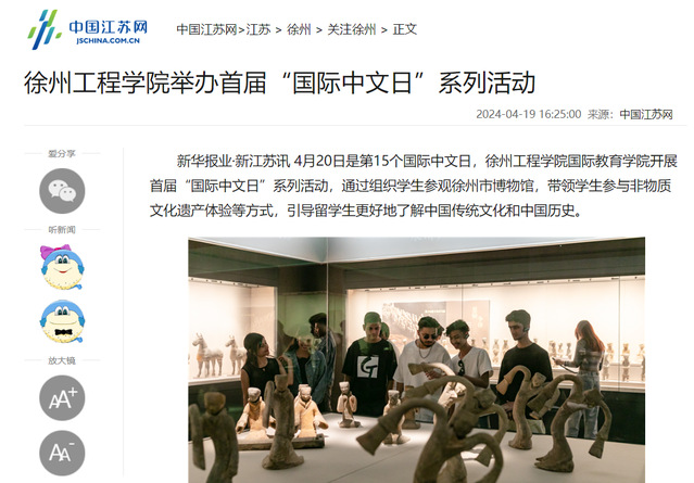 围绕4月20日“国际中文日”,连日来,我校国际教育学院开展了系列活动。中国江苏网进行了跟踪报道。