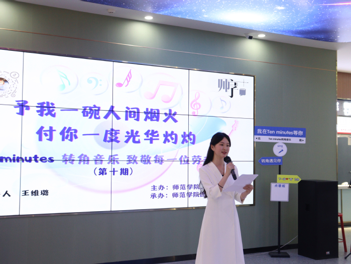 此次系列活动聚焦大学生文化艺术生活,秉承着“音乐丰富心灵”的初衷,历经了“风与光”“青春”“遇见”“阳光”“时光”等多个场次的打磨,成功打造了“‘予我一碗人间烟火,付你一度光华灼灼’致敬每一位劳动者五一特别活动”等Ten minutes品牌。一路走来,Ten minutes转角音乐系列走得扎实、走得稳当,不断吸纳新成员、创造新形式、凸显新亮点,拓宽了师范学院打造校园文化的主阵地,彰显了该院学生“阳光生活,快乐成长”的新风貌,打开了元气满、底气足、人气旺的新格局,成为了校园食堂一道亮丽的风景线。