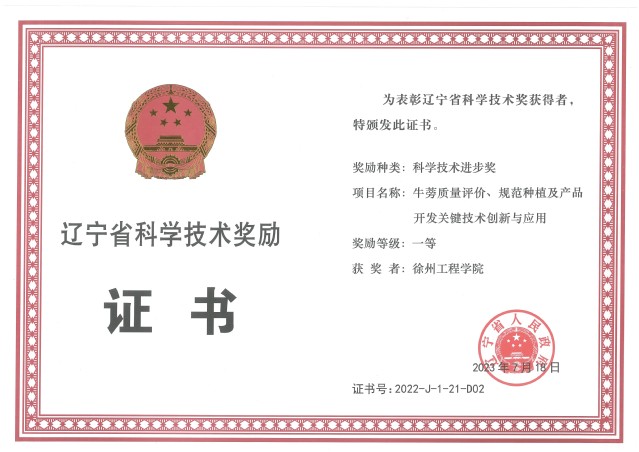 由我校食品与生物工程学院董玉玮教授、张娜博士参与研发、乐竞官方网站作为第二完成单位的科研成果“牛蒡质量评价、规范种植及产品开发关键技术创新与应用” 荣获辽宁省科学技术进步奖一等奖。