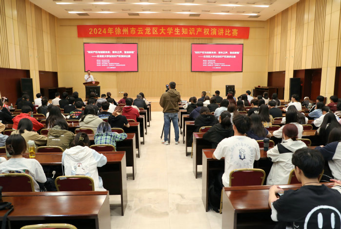 5月8日上午,徐州市云龙区大学生知识产权比赛在我校圆满落幕。副校长黄传辉出席活动并致辞,徐州市知识产权局副局长、市知识产权保护中心主任罗艳出席活动并为获奖选手颁奖。11位选手参加比赛。四所高校150余名师生现场观看了比赛。