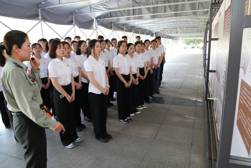 在淮海战役烈士纪念塔前,毕业生党员代表列队整齐,静静肃立。毕业生党员代表向革命烈士敬献花篮,大家重温入党誓词。随后,全体人员参观党纪学习教育专题展览,进一步强化纪律意识,不断增强政治定力、纪律定力、道德定力、抵腐定力。