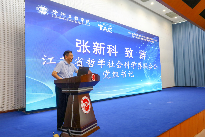 我校党委书记刘洋,中国科学院大学经济与管理学院常务副院长、中国双法研究会副理事长李建平,江苏省社科联党组书记、常务副主席张新科出席开幕式并致辞。曹杰副校长主持开幕式。