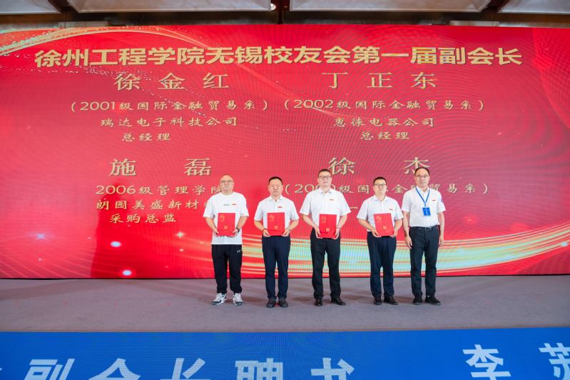 刘洋书记在致辞中向长期以来关心和支持母校发展的校友们表示了衷心的感谢,并对他们在各自领域取得的成就表示欣喜。他介绍了学校近年来的发展成就与愿景规划,诚邀校友们常回母校看一看,积极为母校发展建言献策。刘洋书记为2003届电子商务专业校友、拓海投资创始人朱海飞颁发会长聘书,并共同为无锡校友会揭牌、授旗。