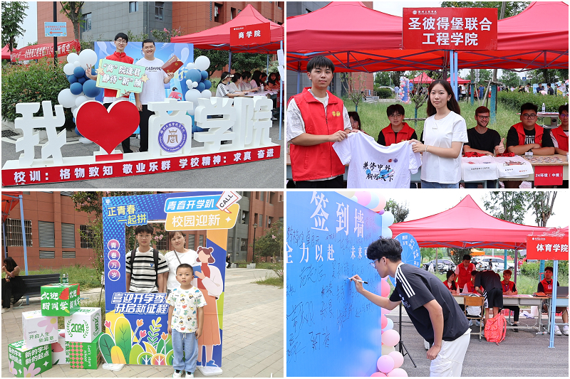 报到当日,各校区道路设施焕然如新,气氛热烈,把新生来校后的第一印象直接拉满。各二级学院创新迎新举措,亮点纷呈:金融、管工、机电、电控等学院布置别出心裁的姓名墙、网红打卡点,引来新生竞相拍照发圈;数统、物新、材化、土木、中俄等学院送出的帆布包、文化衫、校园地图、易拉罐等文创,赢得好评连连;人文、信工、商学院等积极动员党员学生参加迎新活动,着重推介专业特色,强化新生的学院归属感和向心力。此外,食品学院的蛋糕派对、师范学院的击鼓奏乐、外国语学院的“时光邮筒”、体育的转盘抽奖、设计学院的3D打印、环境学院的“时空胶囊”等更是赢得欢呼一片。以心迎新,心意满满,彰显出青春的激扬肆恣与大学的开放包容。