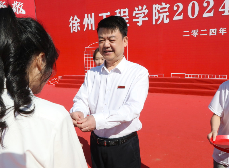 典礼上,校领导为新生代表佩戴校徽,校徽是展示学校形象和精神的标识。戴上校徽,不仅标志着新生们正式成为徐工院人,更意味着他们将担负起树立学校形象的责任。开学典礼在全场合唱校歌《放飞梦想》中落下帷幕。