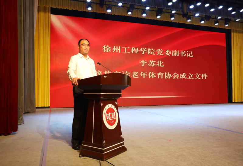 李苏北副书记致辞,他代表学校祝各位离退休老同志重阳节快乐。他表示,学校长期以来高度重视老年人体育工作,积极组织开展各类文娱活动,老年人体育事业取得了积极成效。他希望老年体育协会成立后,能以老同志需求为导向,坚守助老职责,多办利老之事,为促进学校老年体育事业发展发挥积极作用。