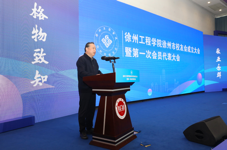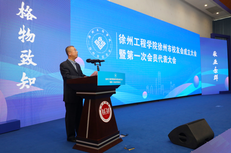 84级校友、徐州市校友会名誉会长邱成发表热情讲话,表达对母校的殷殷情意和对未来校友会工作的期待。他希望校友们常回母校看看,为母校支招,为后学引路;希望充分运用好校友会平台,互信互助有所作为;希望大家薪火相传,为国家、社会更加幸福美好贡献力量。