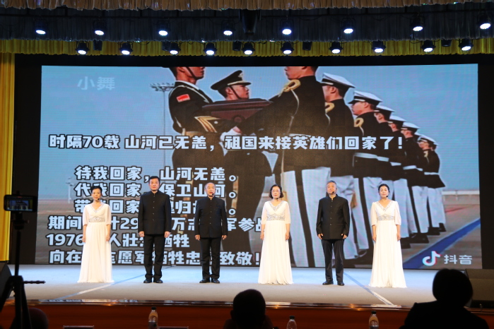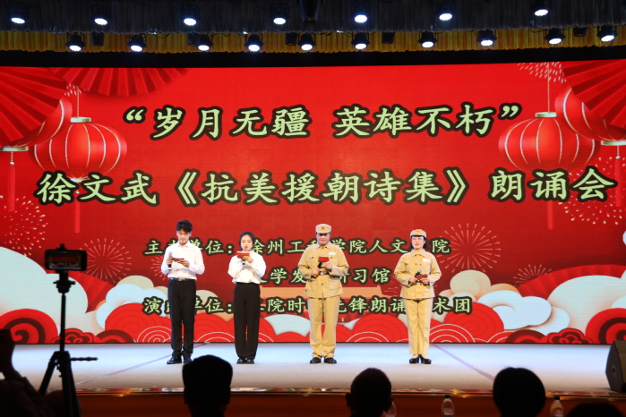 近日,由人文学院主办的“岁月无疆,英雄不朽”徐文武《抗美援朝诗集》朗诵会在大学生活动中心剧场举行。副校长王逢博出席活动,人文学院师生500余人共同观看了此次演出。
