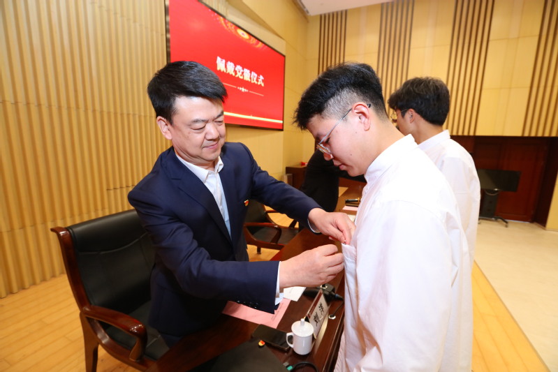 开班仪式上,刘洋书记为新党员代表佩戴党徽。随后,全体参会人员庄严宣读入党誓词,表达对党的忠诚和承诺。培训班班长李姝霆代表全体学员发言,她表示要以这次培训班为契机,不断学习,奋勇前行。