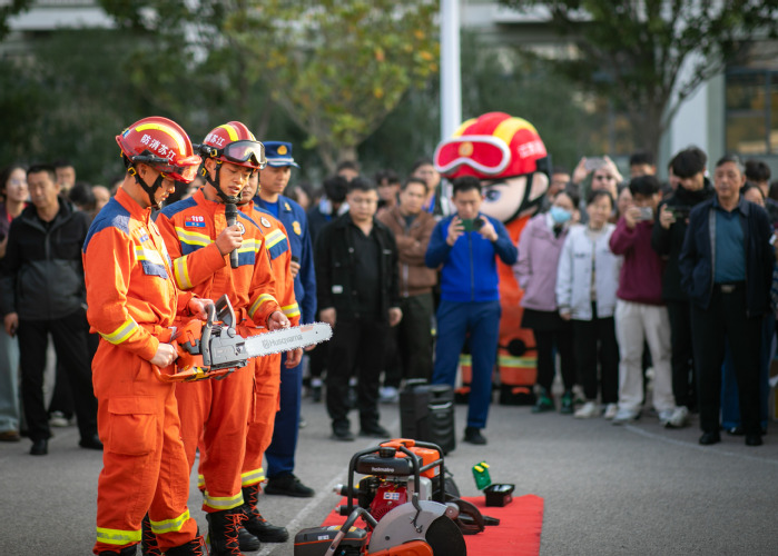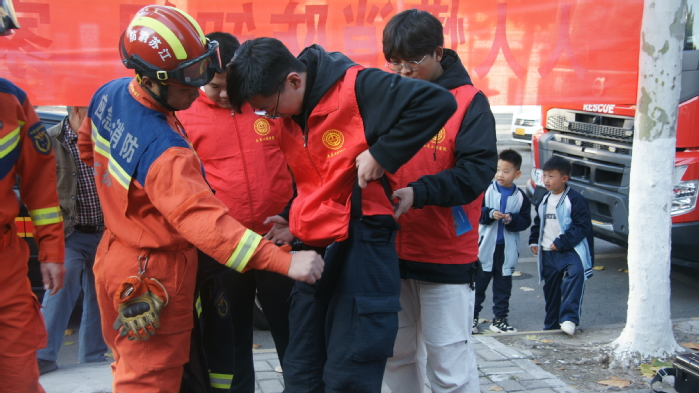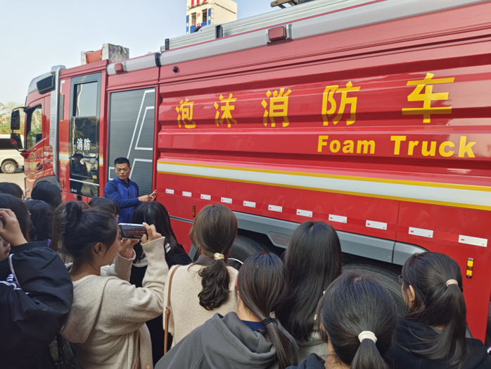 管理工程学院组织师生前往徐州大龙湖旅游度假区消防救援大队开展专业活动。活动中,学生沉浸式体验消防生活,零距离感受“火焰蓝”的魅力。消防战士带领同学们依次参观了消防队的工作区、训练区、生活区、学习区。介绍了灭火器、救生照明灯、切割机,液压顶杆、消防机器人等消防专用器械的功能、使用方法,并向同学们展示了高楼攀登速降、四米高空救援的过程。