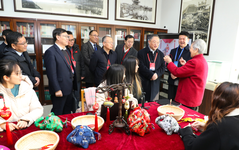 专家组全体成员集中考察淮海经济区非物质文化遗产研究中心,并与国家级非遗传承人王秀英交流