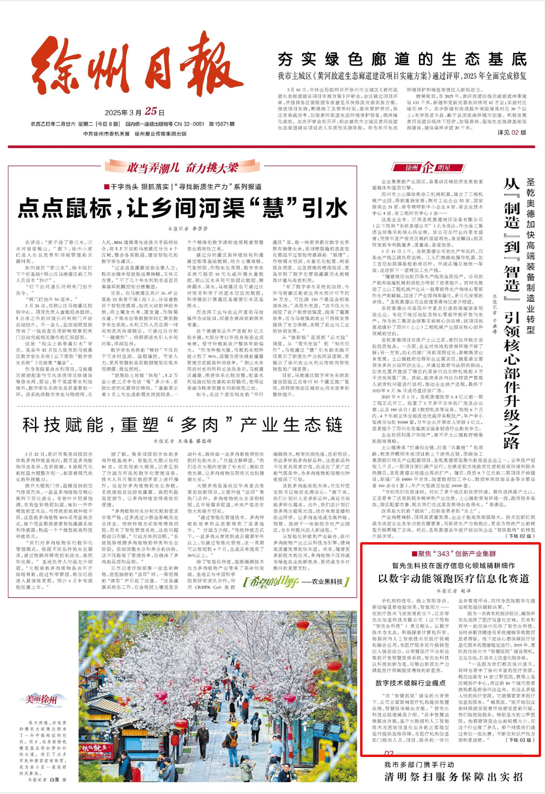 3月25日,《徐州日报》头版以《智先生科技在医疗信息化领域精耕细作——以数字动能领跑医疗信息化赛道》为题,专题报道江苏智先生信息科技有限公司在医疗信息化领域取得的创新成果。据悉,该公司创始人兼总经理臧昊系我校信息工程学院2014届计算机科学与技术专业校友,其团队专注于为健康医疗领域提供数字化解决方案。目前公司产品已服务华东地区400余家医疗机构,其中数字运维类产品在江苏省三级医院市场占有率位居首位。